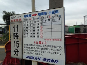 姫路港から小豆島フェリーで1時間40分かかります。