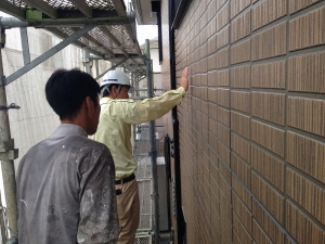 実際に足場に上がっての施主様検査をおすすめしております。