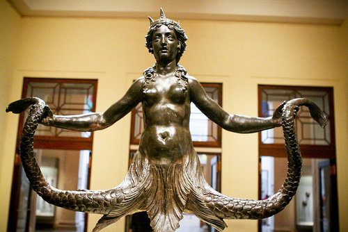 美術館にあるセイレーンの銅像