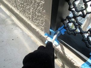 弊社はクラック補修、バルコニの手摺根本やアルミ入隅部のコーキング打設工事も施工しております。