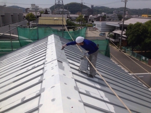 屋根材が金属ので遮熱効果が発揮できると思い遮熱塗料を提案させていただいました。