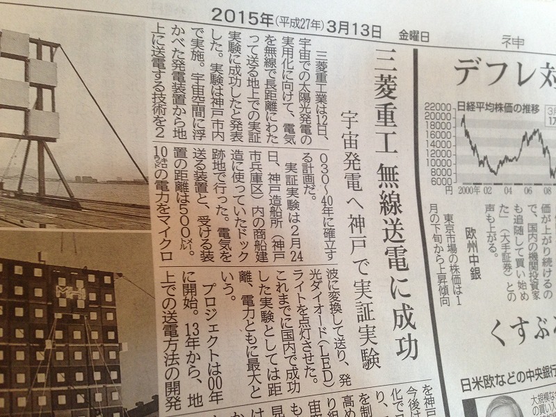 三菱重工業が「無線送電に成功」という新聞記事をみました。