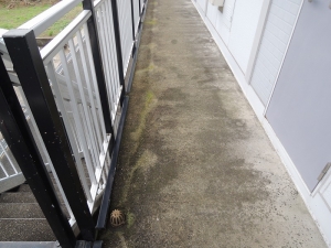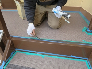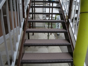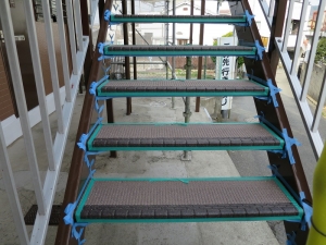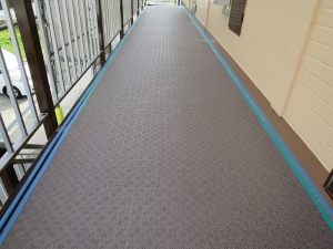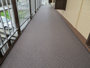 集合住宅の廊下、階段床の長尺シート取付工事をさせていただきました。