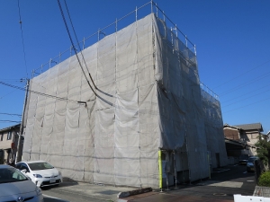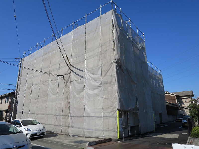 事務所の近くでマンションの塗替え、塗装工事を施工させていただきました。