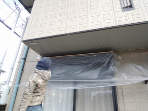 ペンキが付着しないよう床まわりの養生が大変です。