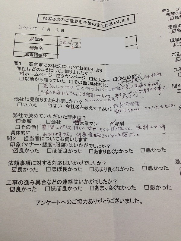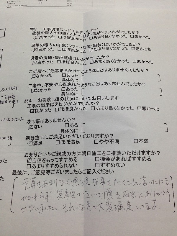 お客様アンケートでありがたいお言葉をいただきました。