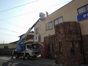 先日、店舗付事務所の折板屋根の塗装、塗り替え工事に入らせていただきました。