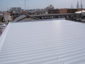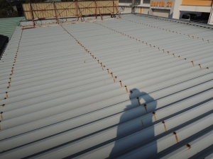 店舗付事務所の折板屋根の塗装、塗り替え工事に入らせていただきました。