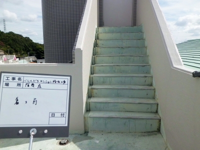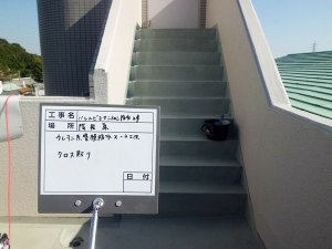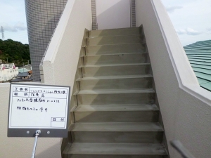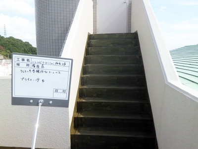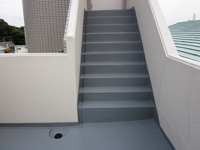 先日、賃貸マンションの階段の床の防水工事と腰壁の塗装工事をさせていただきました。