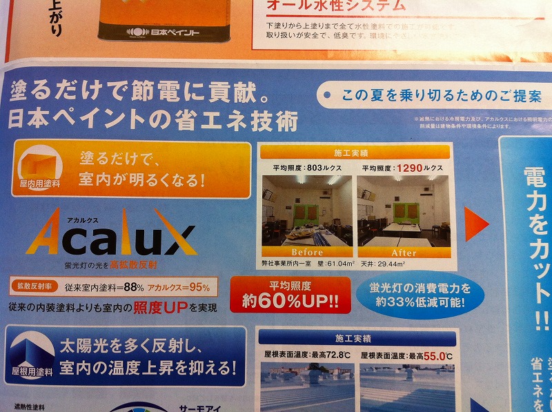 内部の天井や壁に塗装するだけで、光を反射し、室内を明るくする節塗料があります。