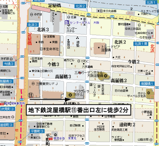 地下鉄淀屋橋から徒歩3~4分ぐらいでした