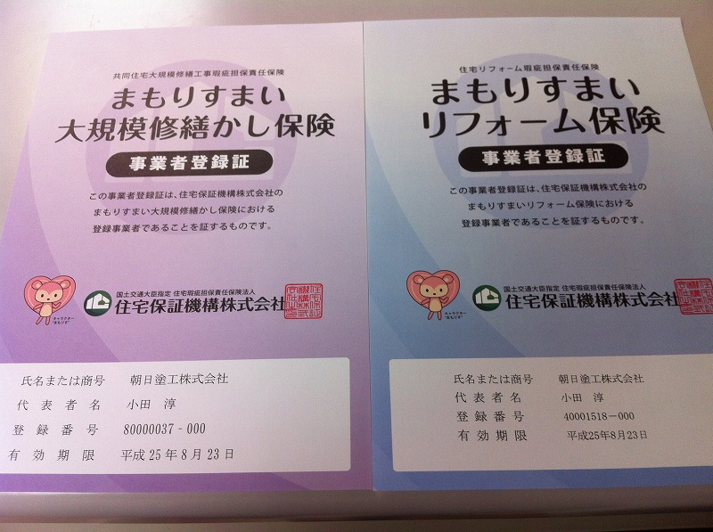 住宅保証機構の「まもりすまいリフォーム保険」と「まもりすまい大規模修繕かし保険」の事業者登録をしました。