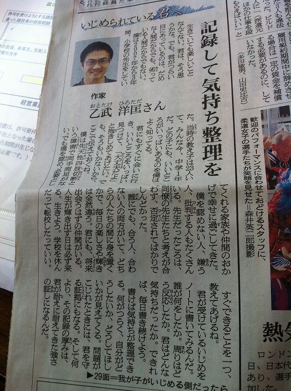 先日の新聞記事で乙武さんの記事が載ので紹介させていただきます。
