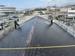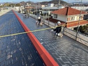先日、屋根カラーベスト塗装完了後に「縁切り」作業を施工しました。