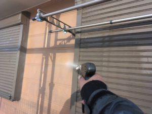 鉄部雨戸や塀、門柱、駐車場土間も高圧洗浄させていただきました。
