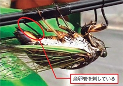 ケーブルに産卵管を突き刺して,光ファイバの心線を傷つけてしまい,通信障害が発生するようになったそうです。