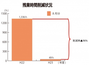 この結果、8月の残業代を95%、電力使用量を25%削減することができました(前年同期比)。