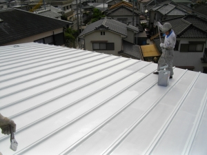 職人曰く「塗装前は裸足で歩けないほど屋根が熱かったんですが、塗装後は裸足で歩けますよ」とのこと。