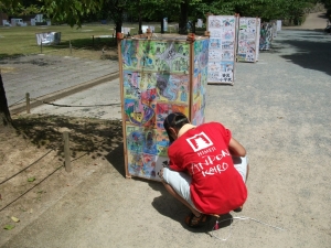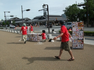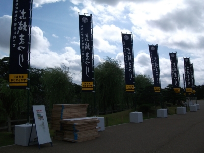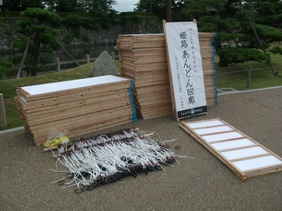 先日、姫路城お城祭りの「あんどん回廊」の設営準備を手伝いました。