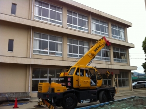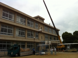 まずはクレーン車が搬入。さすがプロです!!