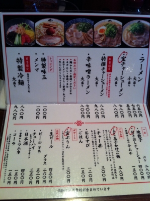 メニュ表です。ラーメンとおむすびを注文しました。