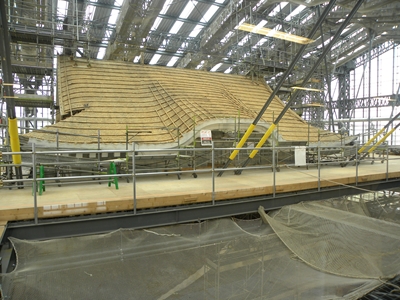 続いて、材料を載せたトラックが搬入。