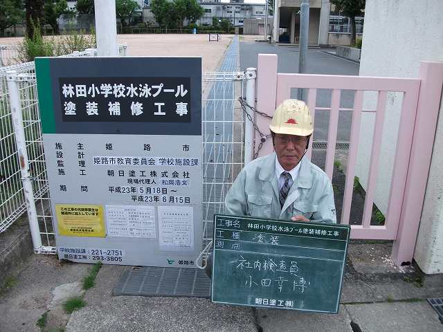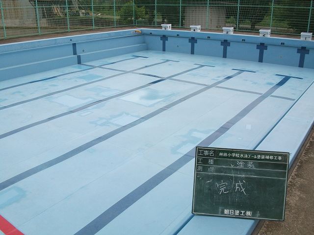 話は変わりますが、先月、姫路市林田小学校のプール補修塗装工事を受注し、工事が完了いたしました。