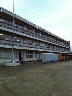 夕方、宿泊予定の渡波小学校へ訪問。