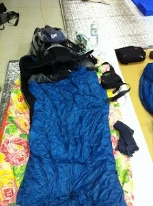 寝袋持参しました。