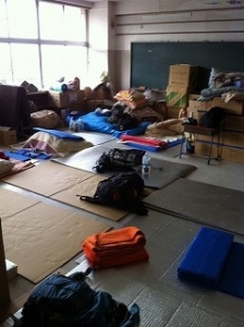 二日目の晩は小学校の教室の床に寝袋を敷いて睡眠をとったのですが、とても疲れました。体育館で1カ月半も寝泊まりしている被災者はもっとしんどいと思います。