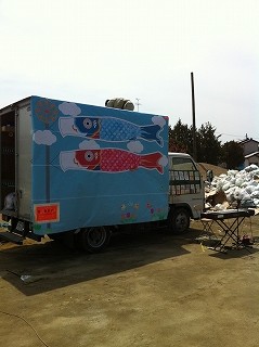 トラックに鯉のぼりを貼りステージを作りました。