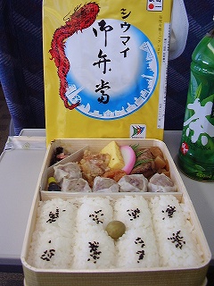 楽しみにしている駅弁。行きはシュマイ弁当。