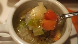 まずはサラダが出てきて、続いてスープその後にパスタを頂いて最後に石窯で焼いたピッツァで締めました。