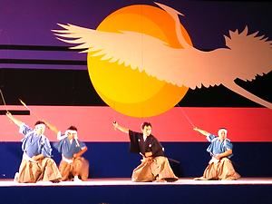 時は慶長元年、佐用町の因幡街道沿いに栄えた宿場町平福の金倉橋のたもとで、剣豪武蔵は、13歳のとき新当流の達人有馬喜兵衛に初勝負をいどみ一刀のもとに倒したと言われています。 また、平福は、佐用川沿の石垣に並ぶ川座敷、土蔵群による川端風景や標高373メートルの利神(りかん)山頂に築かれた山城、利神城(別名雲突城)跡が有名です。