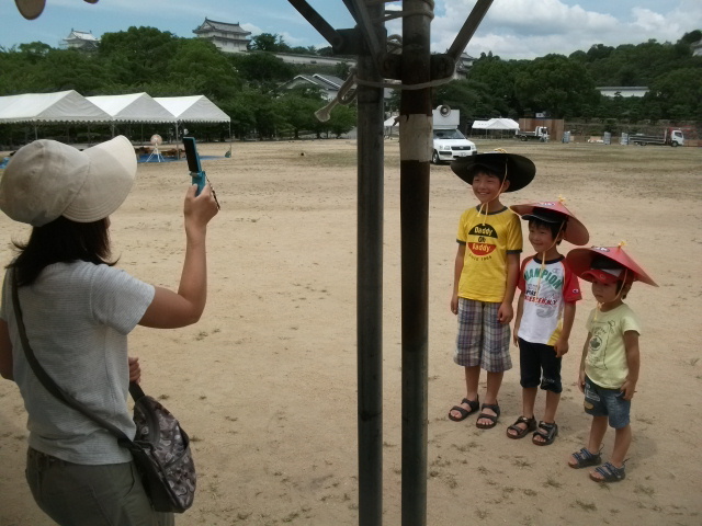 姫路城を背景にハイ!チーズ!!大・中・小かわいいですね!!