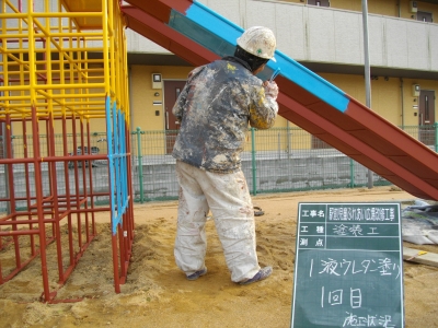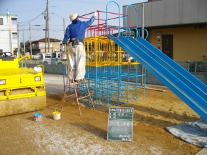 先日、公園の遊具の塗装工事に入らせていただきました!!