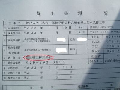 先日、神戸大学研究棟の外壁屋上の塗装防水工事を入札で落札しました!!