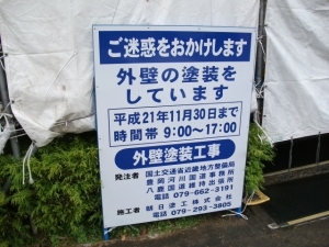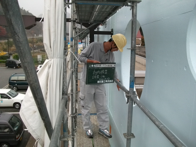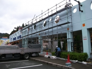 今月の上旬から下旬にかけて、国土交通省発注の「道の駅ハチ北の外壁塗装工事」に入らせていただきました。競争入札で落札いたしました。