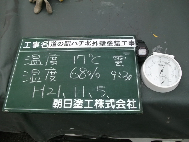 毎朝温度と湿度を計りました。ちなみに気温5℃以下、湿度85%以上は塗装できません。