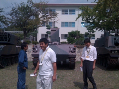 戦車の前で童心に帰るスタッフメンバー!!