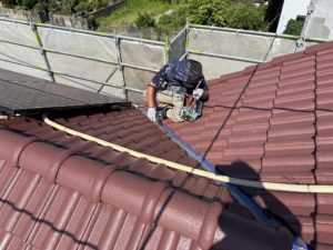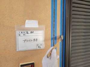 旧コーキングを撤去の上、紙テープを目地両サイドに張り付けます。
