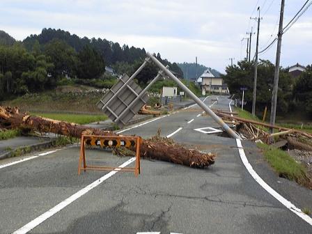 佐用町災害ボランティアセンターへで受付後、特に被害のひどい久崎(くざき)地区に行ってきました。 台風9号の被害は想像以上の被害で、住宅やガードレールが倒壊していました。