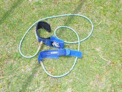リーシュコードはボードを失くさないために、足に付けます。