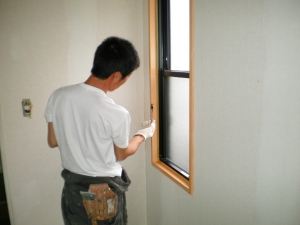 枠まわり塗装中(キズがある場合は、塗装前にパテで処理します)