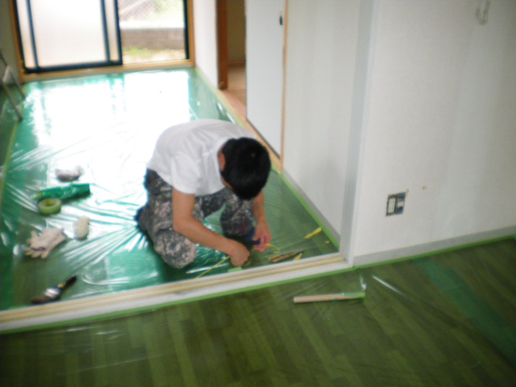 枠まわり塗装中(キズがある場合は、塗装前にパテで処理します)