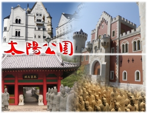 入り口にはパリの凱旋門を配し、公園内には世界の石の文化遺跡を結集していました。