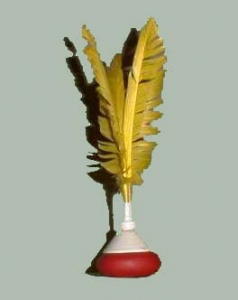 ボールに付いている羽根は、小さいボールの滞空時間を長引かせることと、ボールをねらった方向にまっすぐにとばすことができる両面の作用があります。 したがって、意図した方向に正確に、ゆっくりと飛ばすことも、速いスピードで飛ばすこともできます。