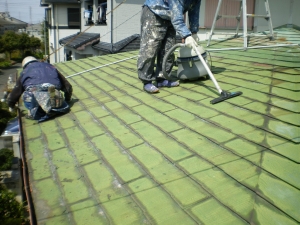 写真は屋根の塗替え時の下地ケレンの状況です。