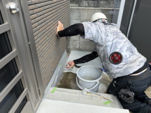 クラックからは雨水が浸水しやすいのでコーキングを打設して隙間を埋めます。