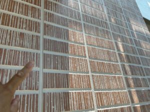 モルタル外壁のたて目地は地震や強風などの建物揺れを吸収する目的で作っております。